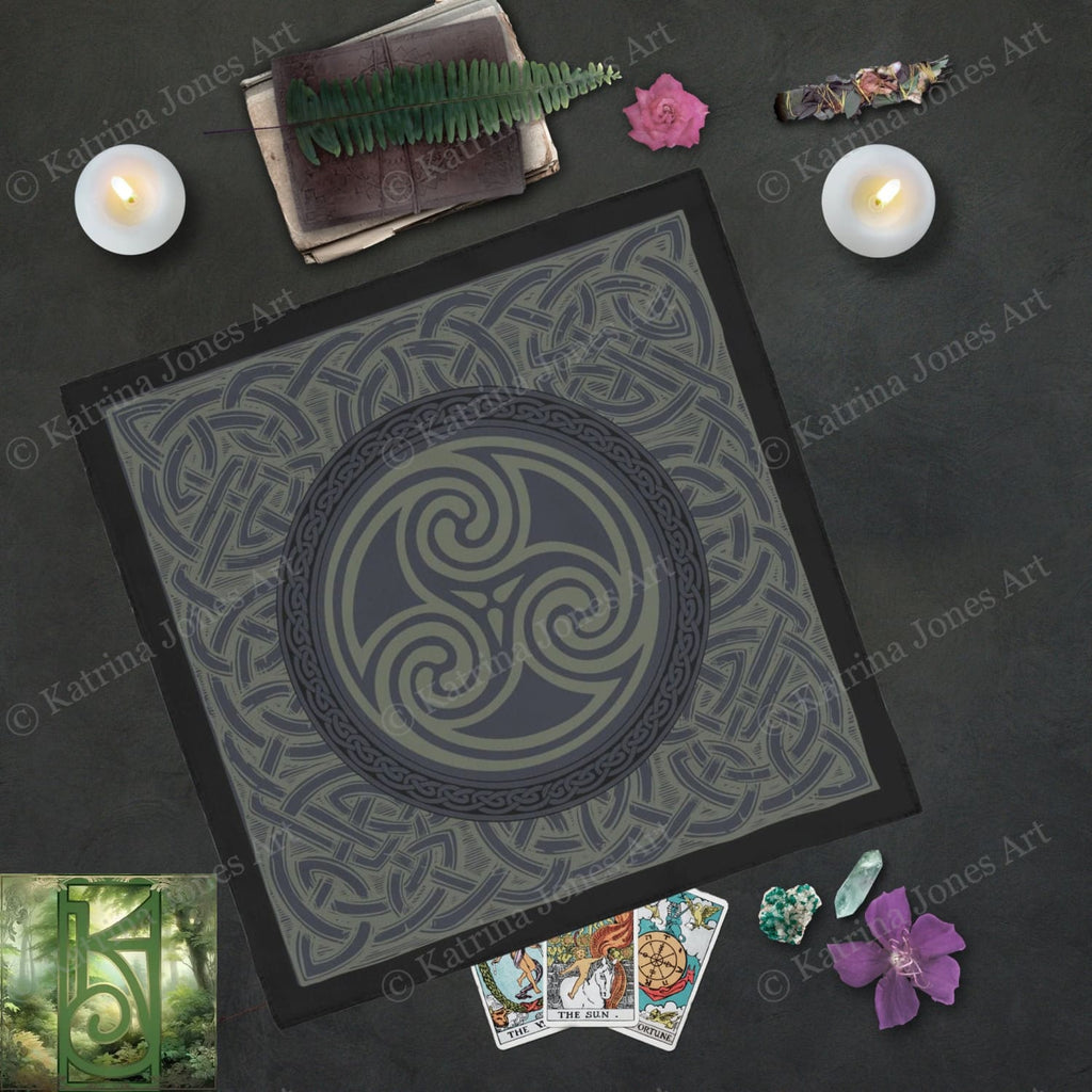 Celtic Altar Tarot Cloth - Dark Triskelle Design Square