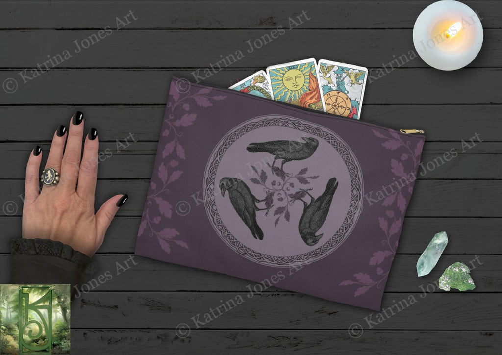 Celtic Ravens Accessory Zippered Pouch Purse Tarot Oracle Deck Makeup Zip Cosmetic Bag Spirit