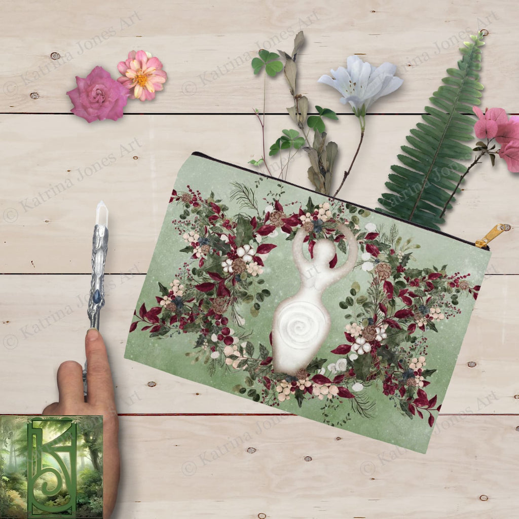 Winter Greens Yule Goddess Pagan Witch Tarot Bag Accessory Pouch