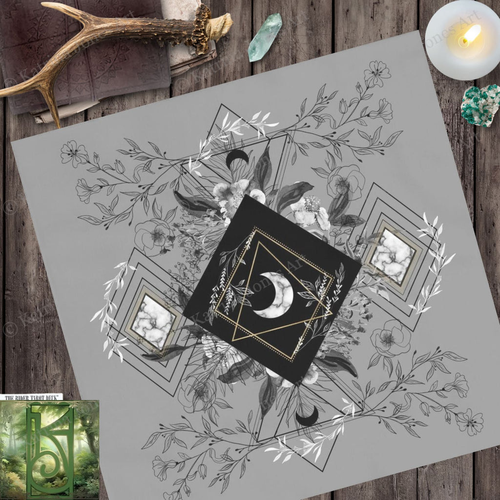 Botanical Grey Moon Square Altar Cloth Tarot Mat