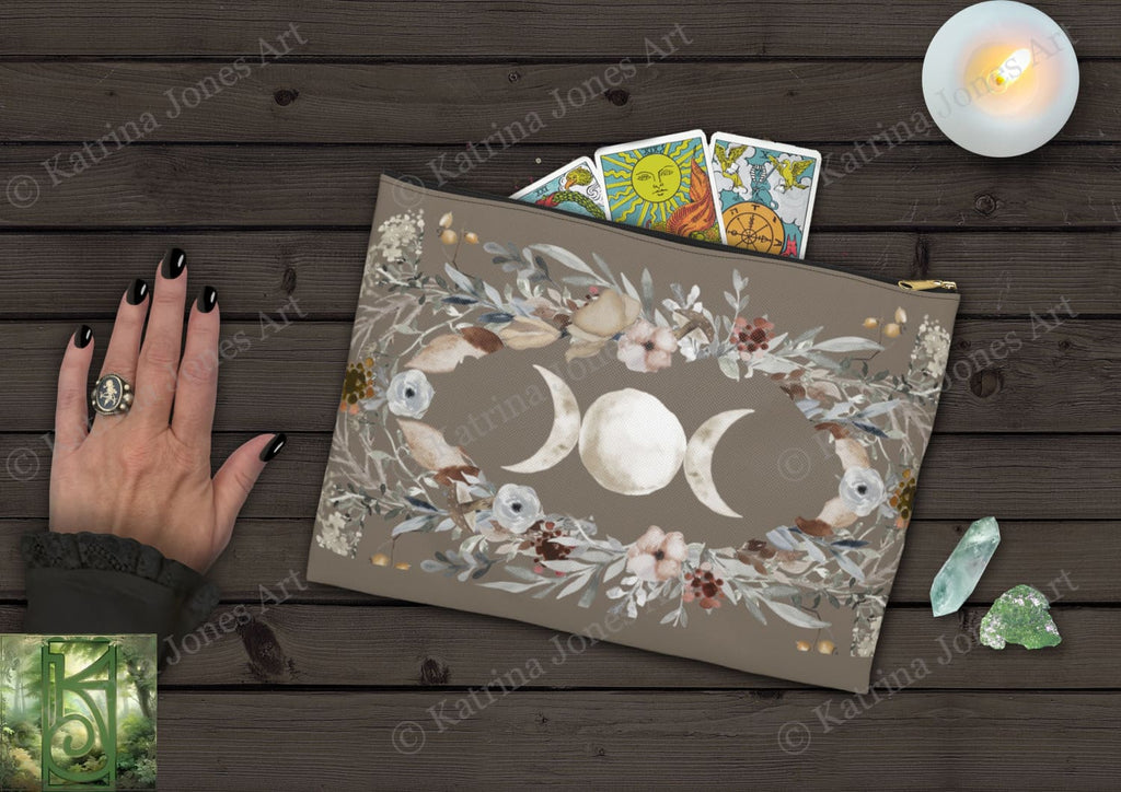 Woodland Triple Moon Goddess Pagan Witch Tarot Bag Accessory Pouch