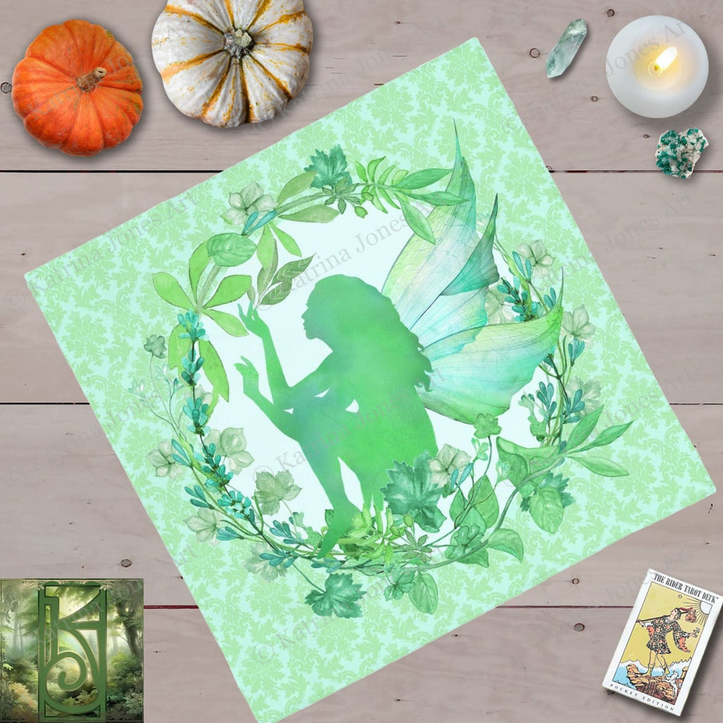 Green Leaf Fairy Square Altar Cloth Tarot Mat