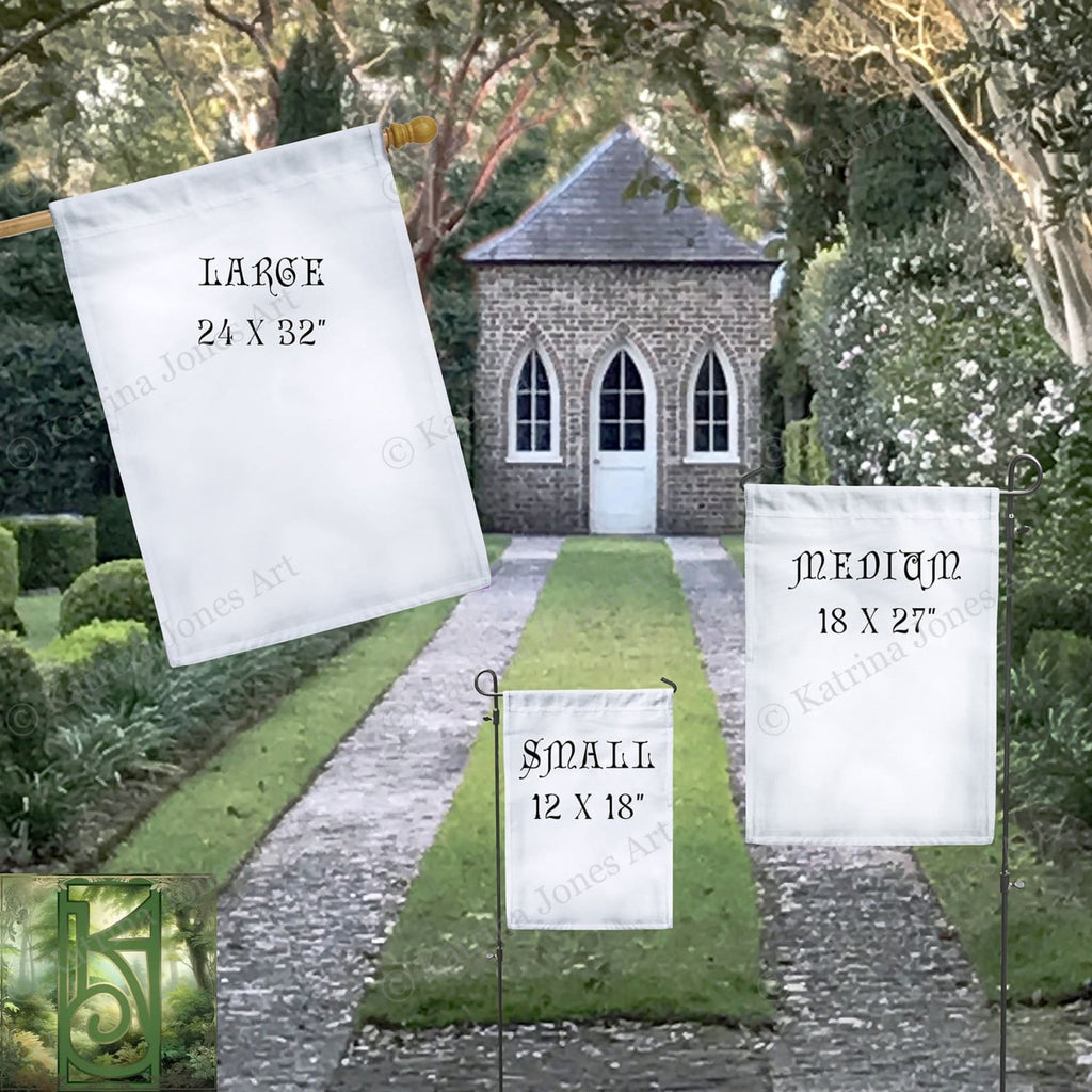 Whether serving a whimsical decorative statement or reverence to the sacred, these banner flags are crafted with care and intention. Hang them outdoors or indoors as part of your altar, shrine or to celebrate the changing seasons.