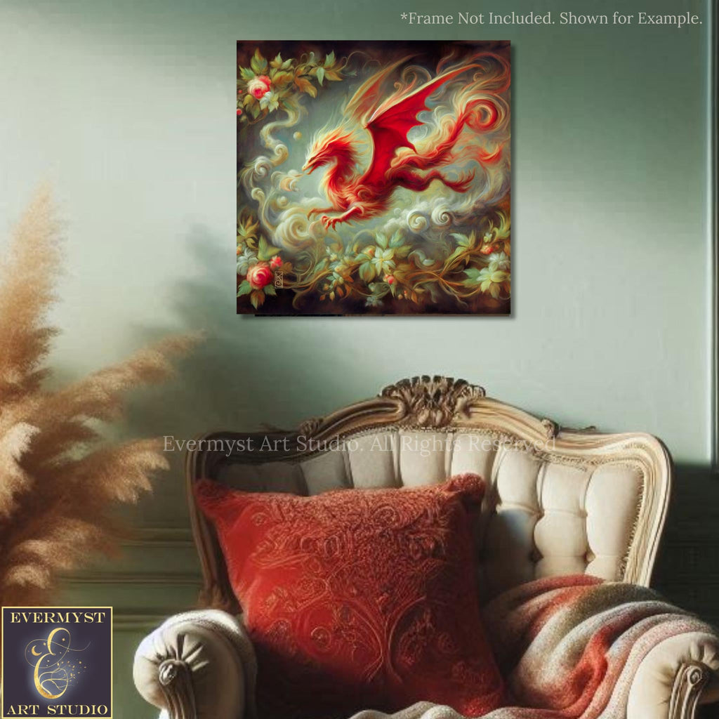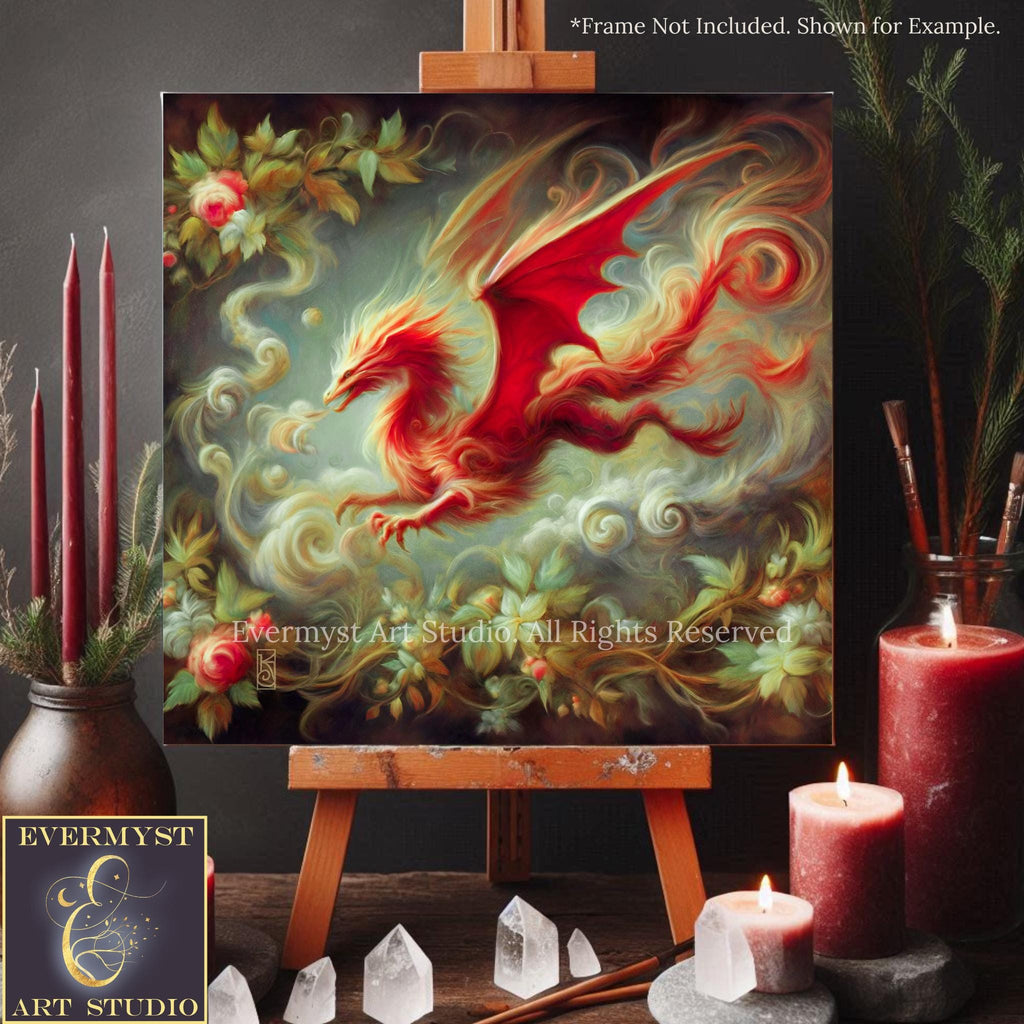 Enchanted Animal Art, Red Spirit Dragon Painting Art Print
