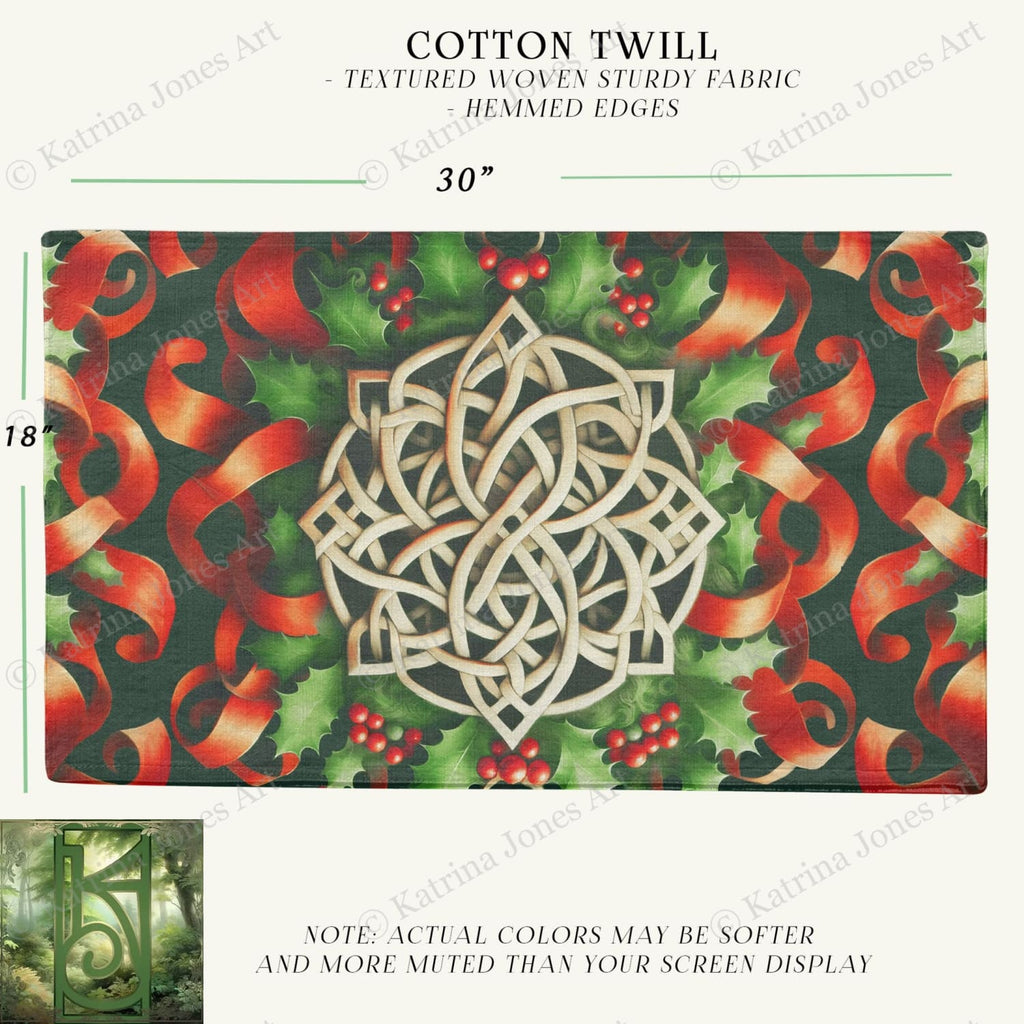 Altar Cloth Celtic Knot Red Ribbon - Cotton Twill Fabric Tarot Mat