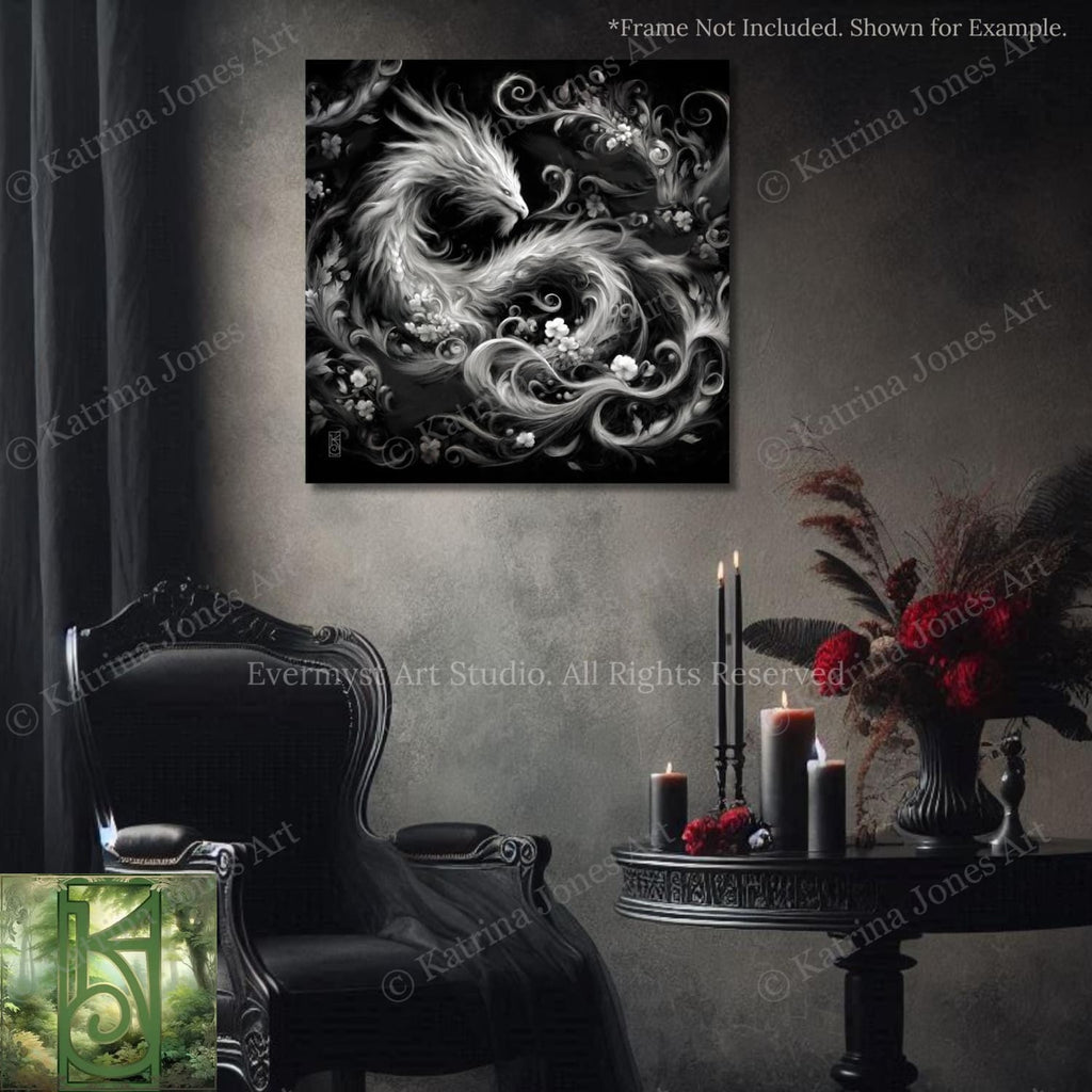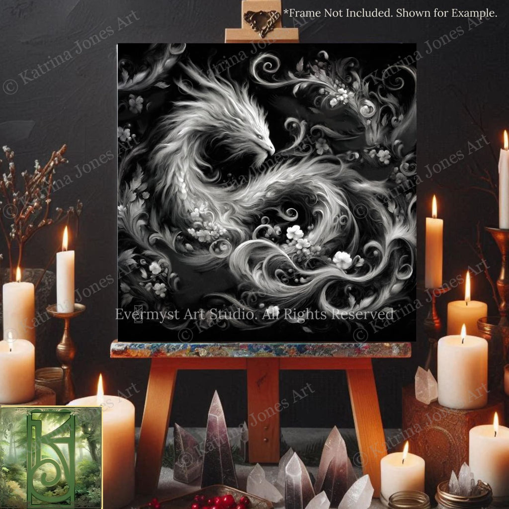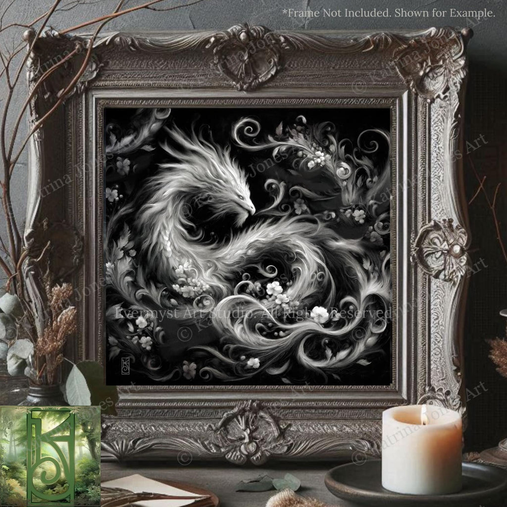 Enchanted Animal Art, White Spirit Dragon Painting Art Print