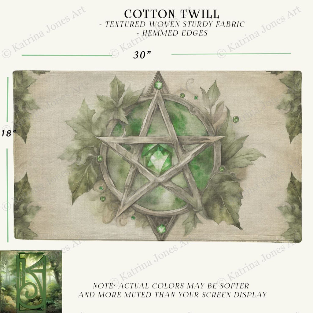 The altar cloth Gemstone Pentacle Wide Cotton Tarot Mat is a beautifully crafted altar cloth designed to enhance your spiritual practice and create a sacred space for meditation, tarot readings, and rituals. This altar cloth measures 18 by 30 inches and is made from 100% cotton twill, providing a thick, opaque surface that lays flat and feels durable. Featuring hand-hemmed double fold edges, this decorative altar cloth combines artistry with functionality to support your spiritual journey.