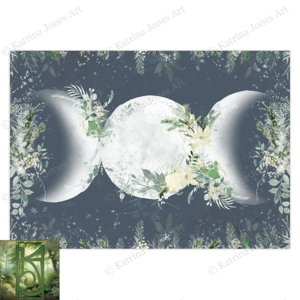 Triple Moon Goddess Greeting Card Yule Witch Wicca Winter Notecards